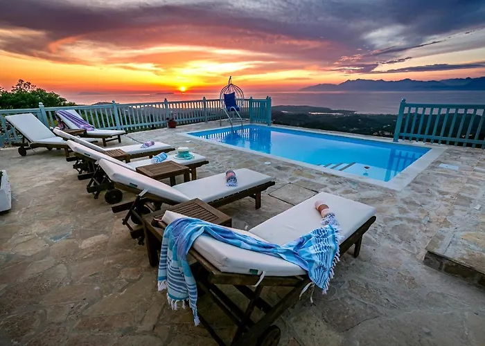 During the stay at Villa Orizontas Corfu, Private Villa With Breathtaking Views Loutses, guests can indulge in a Jacuzzi or visit the Church Ipapantis, located 4.4 km away. Located a 10-minute drive from Mount Pantokrator, the 2-bedroom villa provides Wi-Fi and a car park.